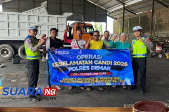 Demak – Satuan Lalu Lintas (Satlantas) Polres Demak menerjunkan polisi wanita (Polwan) dalam kegiatan patroli dialogis di sejumlah obyek vital, Sabtu (7/2/2026). Patroli tersebut menyasar Pasar Bintoro serta kawasan wisata religi Komplek Makam Sunan Kalijaga, Kadilangu, Kabupaten Demak. Kegiatan ini merupakan bagian dari rangkaian Operasi Keselamatan Candi 2026 yang digelar Polres Demak selama 14 hari, terhitung mulai 2 hingga 15…