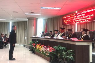 Jakarta – Tokoh politik Indonesia dan mantan senator DPD RI dari Aceh, Dr. Fachrul Razi, S.I.P., M.I.P., M.Si., M.H., M.I.Kom, telah resmi menyandang gelar doktor ilmu politik dari Universitas Nasional Jakarta setelah berhasil mempertahankan disertasinya di hadapan panel penguji, bertempat di Menara Universitas Nasional, Selasa (24-02-2026). Disertasinya yang berjudul " Integrasi Politik di Aceh Pasca MoU Helsinki: Studi Pelembagaan Politik…