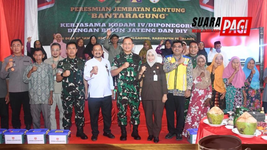 Pemalang - Pangdam IV/Diponegoro Mayjen TNI Achiruddin, S.E., M.Han. meresmikan Jembatan Gantung Bantaragung di Desa Sokawati, Kecamatan Ampelgading, Kabupaten Pemalang, Rabu (1/4/2026). Pangdam menyampaikan bahwa pembangunan jembatan tersebut merupakan hasil kolaborasi antara Kodam IV/Diponegoro bersama Balai Besar Pelaksanaan Jalan Nasional (BBPJN) Jateng-DIY dengan dukungan penuh dari seluruh lapisan masyarakat. Keberhasilan ini adalah bukti nyata kuatnya Kemanunggalan TNI-Rakyat. Jembatan gantung sepanjang…