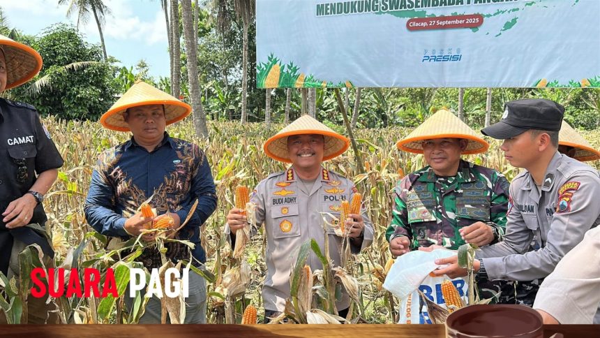 CILACAP – Dalam rangka mendukung program Swasembada Pangan Nasional, Polresta Cilacap melaksanakan Panen Raya Jagung Serentak Kuartal III di Dusun Cigintung, Kelurahan Kutawaru, Kecamatan Cilacap, Sabtu (27/9/2025). Kegiatan ini dipimpin langsung Kapolresta Cilacap Kombes Pol Budi Adhy Buono, S.H., S.I.K., M.H., dan dihadiri unsur Forkopimda serta para petani setempat.