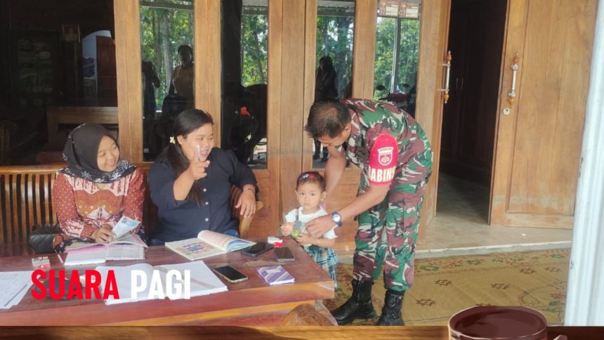 Sragen – Serma Hariono Bati Koramil-11/Jenar Kodim 0725/Sragen aktif mendampingi kegiatan pengukuran tinggi badan (TB) dan berat badan (BB) balita di Posyandu Dukuh Ngelo Desa Jenar Kecamatan Jenar, Senin (29/09/2025).