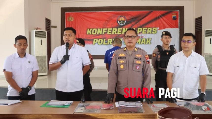 Keberhasilan mengungkap kasus berdarah ini disampaikan dalam konferensi pers yang digelar oleh Kasat Reskrim Polres Demak, Iptu Anggah Mardwi Pitriyono, di Mapolres Demak, Rabu (15/10) siang.