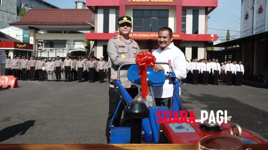 Jember, – Sebagai bentuk dukungan nyata terhadap program Swasembada Pangan Nasional 2025, Kapolres Jember AKBP Bobby A. Condroputra menyerahkan dua unit traktor pertanian (alsinta) kepada dua Gabungan Kelompok Tani (Gapoktan) di Kabupaten Jember.