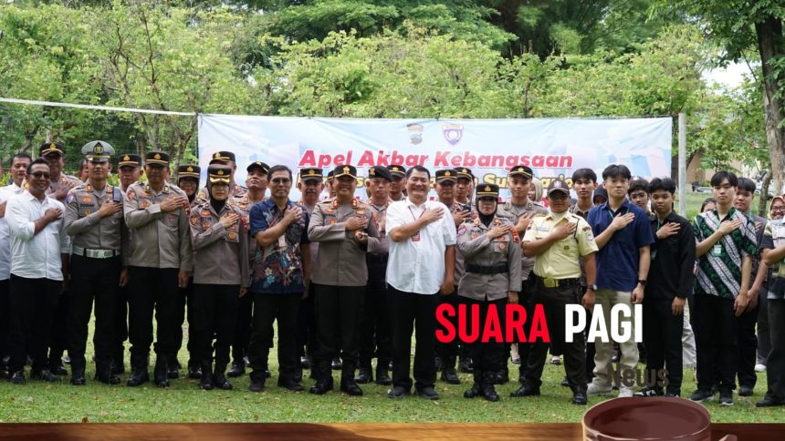 SUKOHARJO – Suasana semangat kebangsaan terasa di halaman PT Konimex, Jl. Mantung, Dusun II, Manang, Kecamatan Grogol, Kabupaten Sukoharjo, pada Kamis (23/10/2025) pagi. Sekitar 300 peserta dari unsur pekerja, manajemen perusahaan, dan kepolisian mengikuti Apel Akbar Kebangsaan Buruh Kabupaten Sukoharjo, yang dipimpin langsung oleh Kapolres Sukoharjo AKBP Anggaito Hadi Prabowo, S.H., S.I.K.