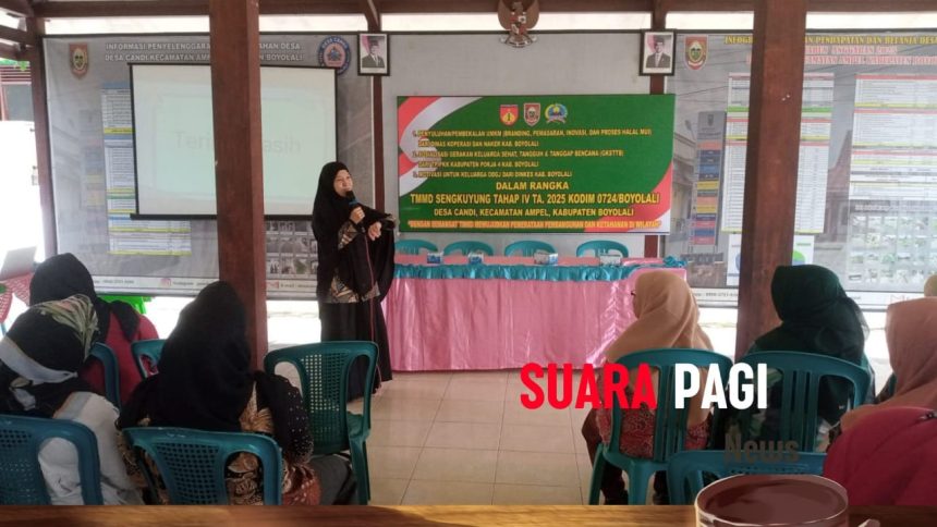 Boyolali. Satgas TMMD Sengkuyung Tahap IV Kodim 0724/Boyolali terus menunjukkan kepeduliannya terhadap peningkatan kesejahteraan masyarakat. Bersinergi dengan Dinas Koperasi dan UKM Kabupaten Boyolali, Satgas TMMD menggelar penyuluhan pengembangan Usaha Mikro Kecil dan Menengah (UMKM) di Aula Balai Desa Candi, Kecamatan Ampel, (25/10/25).