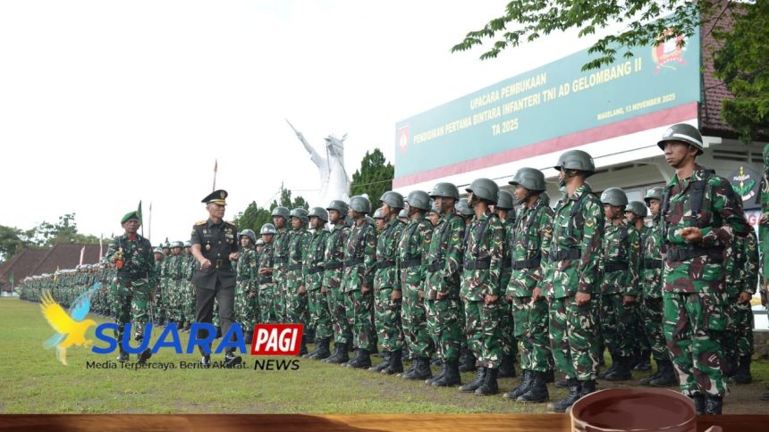 Magelang – Komandan Resimen Induk Kodam (Danrindam) IV/Diponegoro Brigjen TNI Hindratno Devidanto, S.E., M.M., M.Han. mewakili Pangdam IV/Diponegoro membuka secara resmi Pendidikan Pertama Bintara (Dikmaba) Infanteri TNI Angkatan Darat Gelombang II Tahun Anggaran 2025 di Lapangan Secaba Rindam IV/Diponegoro, Kamis (13/11/2025).