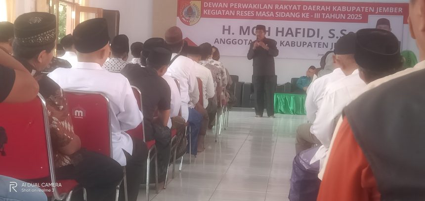 Jember Suara paginews.com– Anggota DPRD Jember, H. Moh. Hafidi, S.Sos, kembali menyapa konstituennya dalam agenda Reses Masa Sidang ke-III Tahun 2025 yang digelar di aula SMK Ibu Pakusari, pada Kamis, (4 /12 2025).