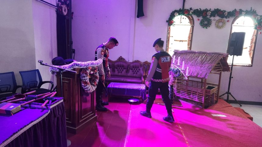 Kegiatan sterilisasi ini dilakukan untuk memastikan tidak adanya benda mencurigakan maupun potensi ancaman yang dapat mengganggu jalannya ibadah Natal. Pemeriksaan dilakukan secara menyeluruh di area dalam dan sekitar gereja, termasuk ruang ibadah, altar, hingga akses pintu masuk.