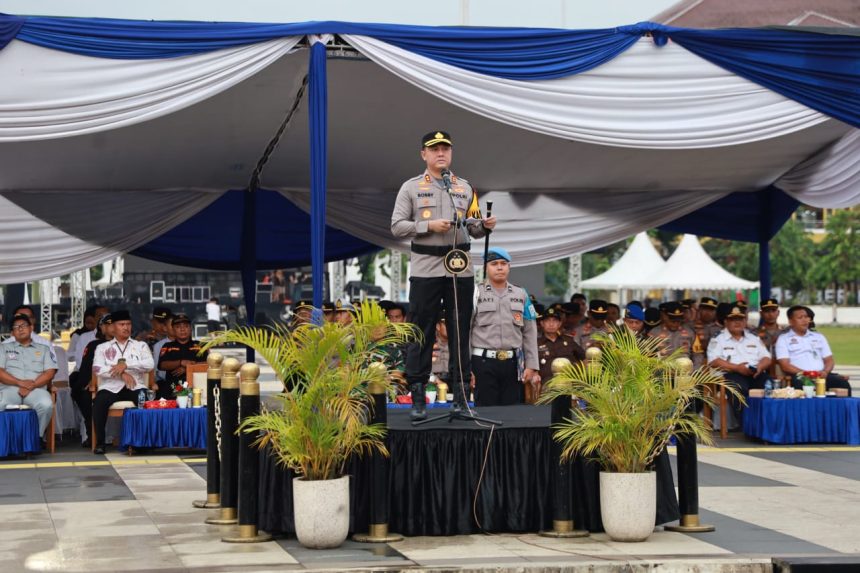 Jember, Suara paginews.com– Polres Jember menggelar Apel Gelar Pasukan Operasi Lilin Semeru 2025 sebagai bentuk kesiapan pengamanan perayaan Natal 2025 dan Tahun Baru 2026. Apel yang digelar di Alun-alun Kabupaten Jember ini dipimpin langsung oleh Kapolres Jember AKBP Bobby A. Condroputra.