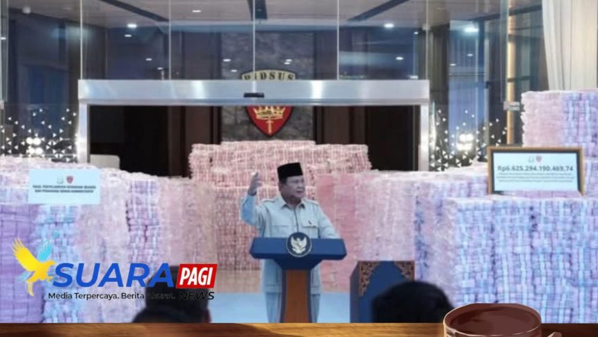 Jakarta – Presiden Republik Indonesia, Prabowo Subianto, menyaksikan langsung penyerahan laporan capaian hasil Satuan Tugas Penertiban Kawasan Hutan (Satgas PKH) dan penyelamatan keuangan negara tahun 2025. Kegiatan tersebut digelar di Gedung Utama Kompleks Kejaksaan Agung RI, Jakarta, pada Rabu (24/12/2025).