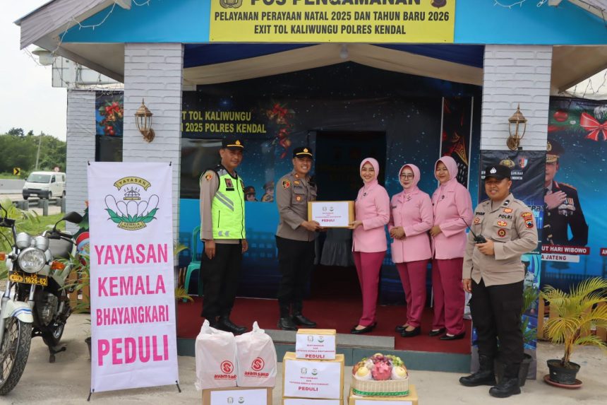 KENDAL — Bhayangkari Cabang Kendal melakukan pengecekan dan supervisi di Pos Pengamanan (Pos Pam) Pintu Exit Tol Kaliwungu, Kabupaten Kendal, Selasa (30/12/2025). Kegiatan ini dilaksanakan dalam rangka mendukung pelaksanaan Operasi Lilin Candi 2025 yang digelar Polres Kendal untuk pengamanan Natal dan Tahun Baru.