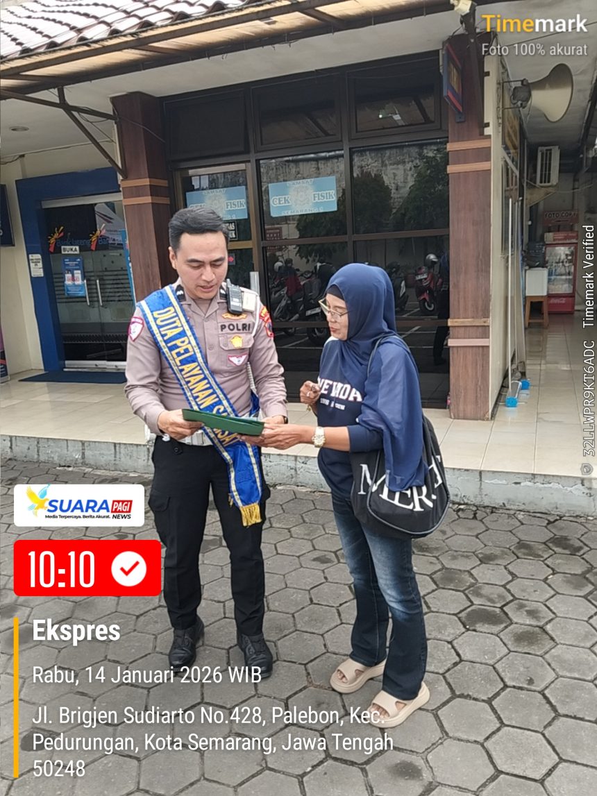 Semarang – Upaya meningkatkan kualitas pelayanan kepada masyarakat terus dilakukan jajaran kepolisian bersama instansi terkait. Salah satunya melalui kehadiran Duta Pelayanan Aipda Rudy, S.H., M.H. di Samsat I Pedurungan, Kota Semarang, Rabu (14/1/2026).