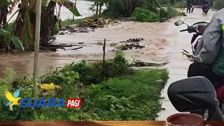 Jebolnya tanggul mengakibatkan air sungai mengalir deras dan meluap ke area persawahan milik warga. Luapan air dengan cepat merendam lahan pertanian yang berada di sekitar bantaran sungai, sehingga memicu kekhawatiran petani akan potensi gagal panen.