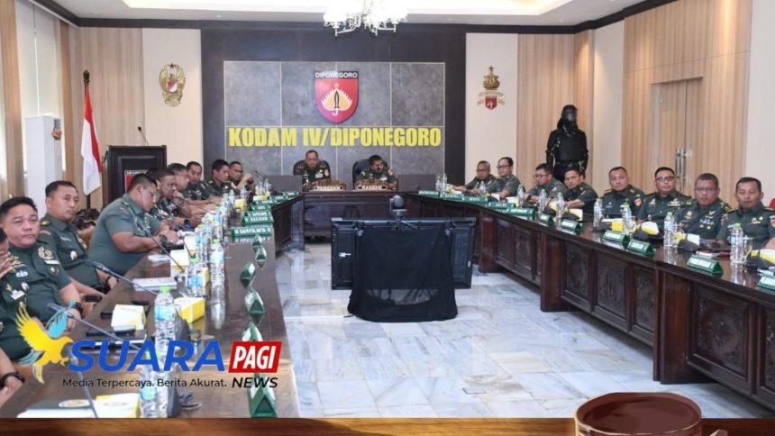 Semarang – Pangdam IV/Diponegoro Mayjen TNI Achiruddin, S.E., M.Han., menghadiri Taklimat Awal Penyampaian Program Kerja dan Anggaran (Progjagar) TNI Angkatan Darat Tahun Anggaran 2026 yang dilaksanakan melalui video conference (vicon), bertempat di Ruang Bina Yudha (RBY) Makodam IV/Diponegoro, Selasa, (20/1/2026).