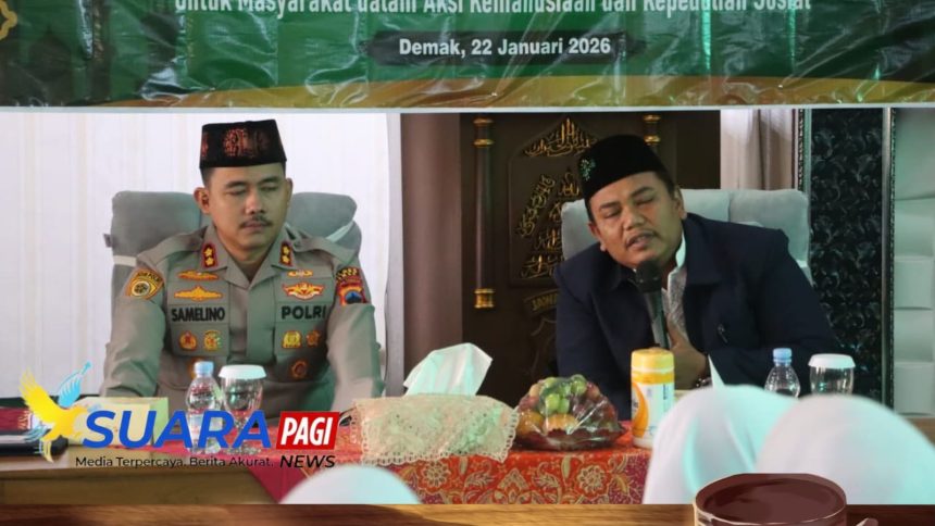 Demak – Kepolisian Resor (Polres) Demak, Jawa Tengah, menggelar pengajian dalam rangka memperingati Isra Mi’raj Nabi Muhammad SAW 1447 Hijriah di Masjid Uswatun Hasanah Mapolres Demak, Kamis (22/1/2026). Kegiatan tersebut mengusung tema “Isra Mi’raj Nabi Besar Muhammad SAW Memperteguh Keimanan dan Ketakwaan Personel Polri untuk Masyarakat dalam Aksi Kemanusiaan dan Kepedulian Sosial.”