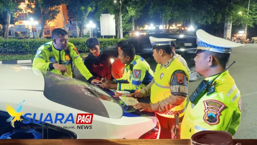 Penertiban yang dimulai sekitar pukul 23.00 WIB tersebut menyasar pelanggaran lalu lintas kasat mata, khususnya penggunaan knalpot tidak standar yang kerap menimbulkan kebisingan dan keresahan masyarakat. Dari hasil kegiatan tersebut, petugas mencatat 10 lembar tilang, terdiri dari 8 pelanggaran STNK dan 2 kendaraan roda dua, serta 11 teguran kepada pengendara yang melanggar.
