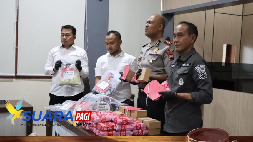 Dari lokasi, polisi mengamankan puluhan paket obat petasan siap edar, bahan baku peledak, ratusan sumbu, alat peracik, serta satu unit handphone yang digunakan untuk transaksi online.
