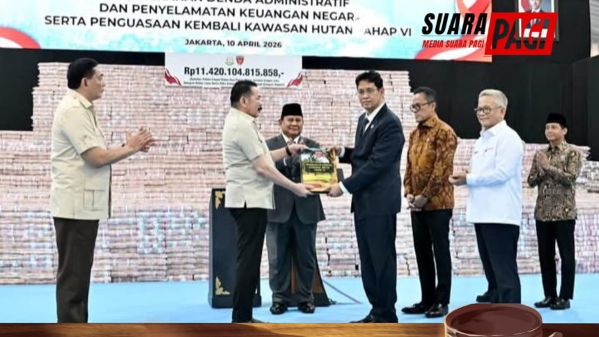 JAKARTA – Prabowo Subianto memimpin langsung penyerahan denda administratif serta hasil penyelamatan keuangan negara dan penguasaan kembali kawasan hutan tahap VI yang digelar di Kompleks Kejaksaan Agung RI, Jumat (10/4).