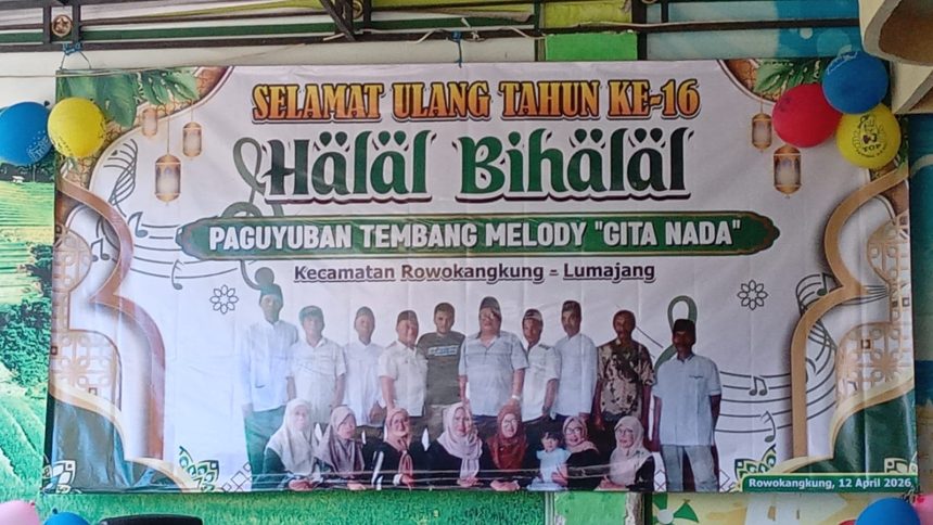 Lumajang — Paguyuban pecinta seni tembang melodi “Gita Nada” Kecamatan Rowokangkung, Kabupaten Lumajang, menggelar perayaan Hari Ulang Tahun (HUT) ke-16 yang dirangkaikan dengan kegiatan Halal Bihalal dalam suasana meriah dan penuh kehangatan.