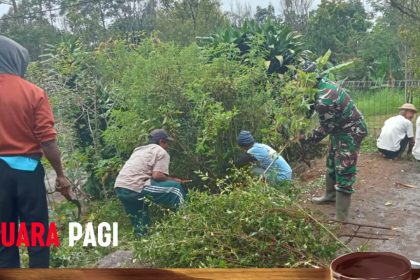 Babinsa Nogosari Ajak Warga Sembungan Gotong Royong Bersihkan Jalan Desa.