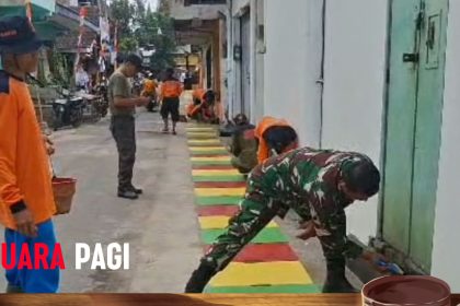 Guyub Rukun, Satgas KBD Ke-5 TA. 2025 Kodim 0735/Surakarta akhiri dengan Pengecatan Lis Jalan dan Penutup Saluran Air.