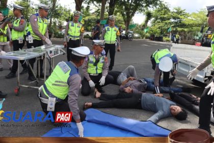 Polres Wonogiri Gelar Simulasi Penanganan Banjir dan Laka Lantas, Ratusan Personel Gabungan Diterjunkan