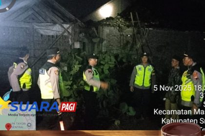 Respon Cepat, SPKT Polsek Masaran Evakuasi Pohon Tumbang yang Timpa Rumah Warga di Sragen