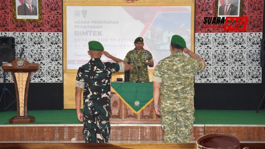 Demak – Komando Distrik Militer 0716/Demak menggelar kegiatan Penutupan Bimbingan Teknis bagi personel staf Batalyon TP 937/Satria Kalijaga. Kegiatan ini secara resmi di tutup langsung oleh Komandan Kodim, Letkol Arm…