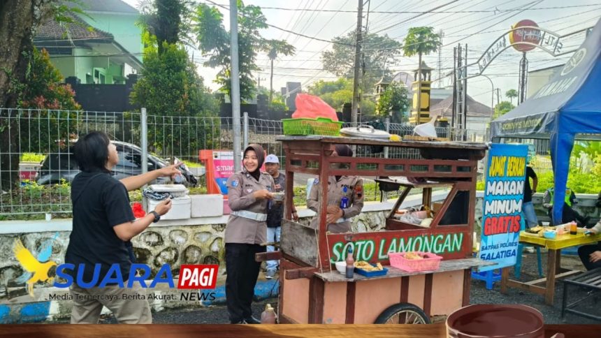 Jumat Berkah Di Satpas Polres Salatiga, Polwan Ikut Turun Tangan Jadi Asisten Tukang Soto
