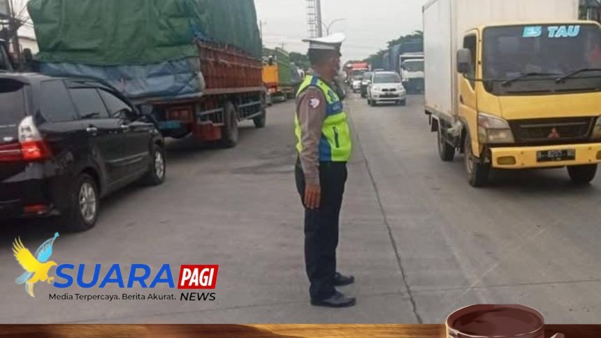 Unit Lantas Polsek Genuk Urai Kemacetan di Ujung Tol Kaligawe Akibat Proyek Tol Semarang–Demak
