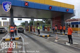 Semarang, Minggu (4/1/2026)– Arus balik kendaraan di Gate Tol Kalikangkung, Kota Semarang,…