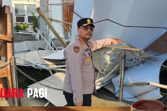 Brebes - Kapolres Brebes, AKBP Lilik Ardhiansyah memantau langsung lokasi robohnya atap…