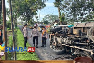 Polri Gerak Cepat Tangani Truk Bermuatan Pasir Terguling di Jalur Ngadirojo–Nguntoronadi
